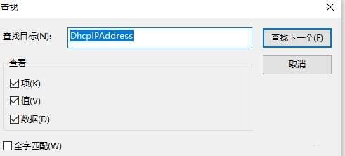 3、很有可能有好几个名字为字符串数组的项 点一下查找寻找带有DhcpIPAddress值。