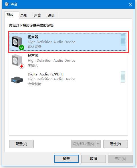 3、声音窗口中,寻找并双击鼠标开,当今已经应用的音箱机器设备;