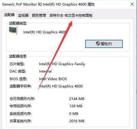 4、这时候便会开启独立显卡的属性窗口,点一下窗口中的“英特尔核显控制面板”选项卡。