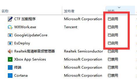 5、最终之中一个个将已启用的启动项给禁用,看一下是哪个有什么问题,把有问题的启动项关闭就可以处理。