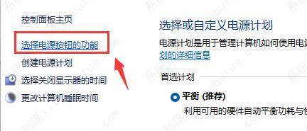 2、在新给的页面中,点击“选择电源按钮的功能”。