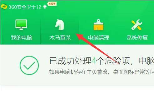 2、安装完成后将它打开,进入“木马查杀”选项。