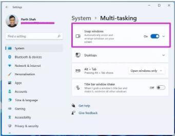 默认情况下,从“设置”菜单启用“捕捉窗口”选项。如果您或 Windows 操作系统不小心禁用了它,那么是时候启用它了。