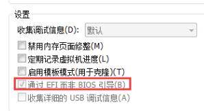 7、接着在上方设置中勾选开启“通过 EFI 而非 BIOS 引导”