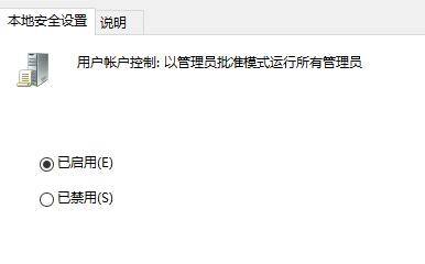 2、双击打开该策略,勾选“以启用”,再点击下方“确定”保存即可获得管理员权限。