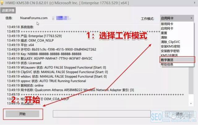 打开这款激活工具之后,会有一个启动前的检查,检查你的系统是否需要激活。然后选择工作模式:数字激活,点击开始即可进行激活。